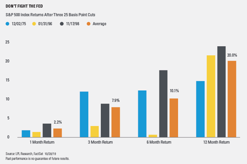Пауэлл сравнивал эту "корректировку" с действиями ФРС в 1995 и 1998 годах. Если учесть тот факт, что цикл "корректировки" тогда состоял именно из трёх снижений можно было бы предположить, что дальнейшая пауза от ФРС может разочаровать рынки.