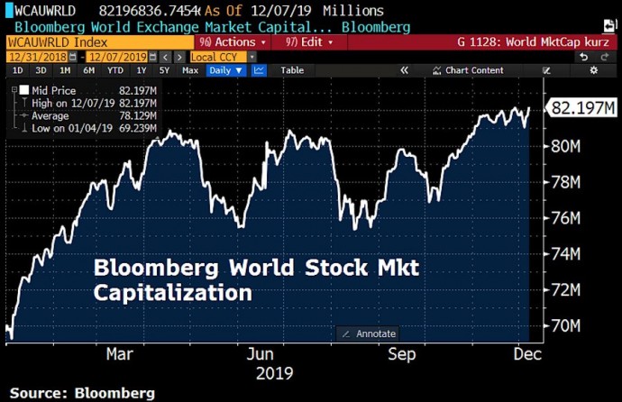 На прошедшей неделе капитализация мировых рынков акций по индикатору Bloomberg Word Stock Mkt Capitalization установила новый рекорд в 82197 млн. долларов США.