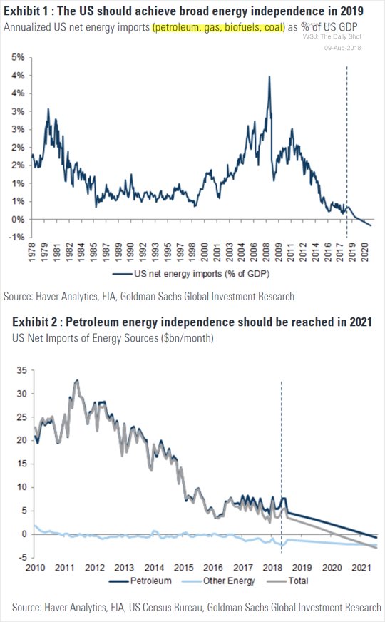 Не смотря на замедление роста добычи в Штатах, полной энергетической независимости Штаты планируют достичь в следующем году. К 2021 году аналитики Goldman Sachs ожидают что США станут чистыми нетто-экспортёрами нефти.