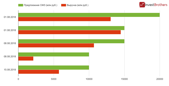 Однако даже эти действия не смогли помочь ведомству успешно распродать все бумаги. При предложении в 10 млрд рублей спрос составил 20,1 млрд, однако это позволило министерству занять лишь 5,7 млрд рублей.