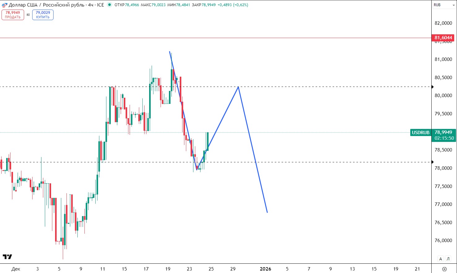 В статье от 17 декабря ссылка на статью я прогнозировал формирование коррекции, которая реализуется на наших глазах.