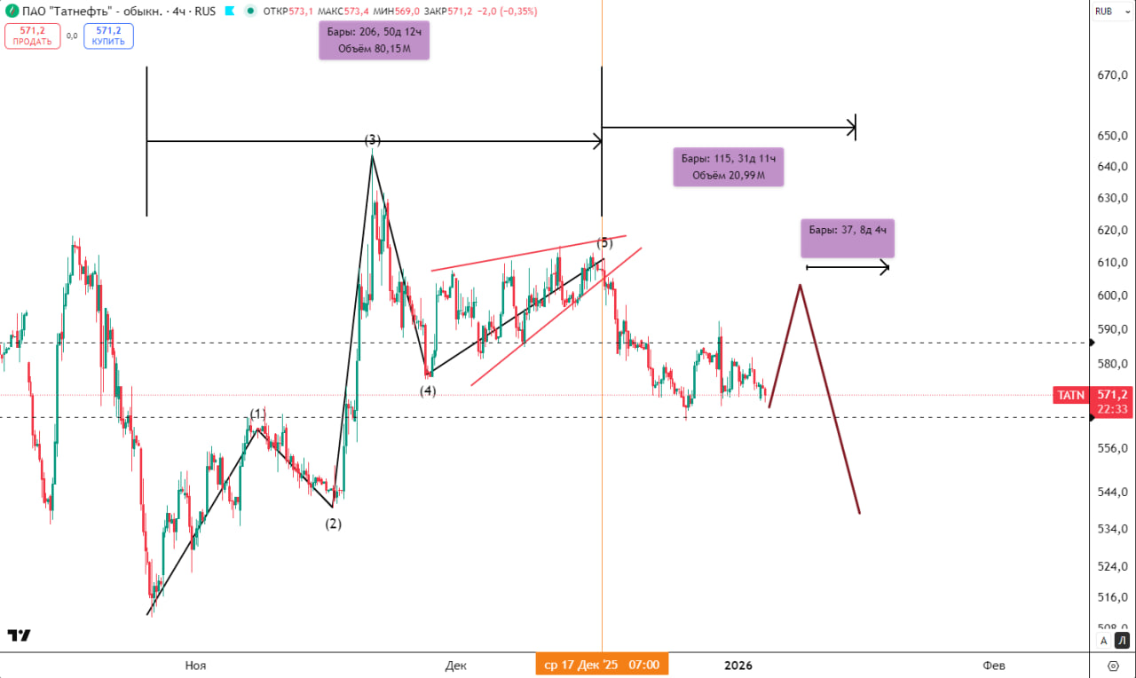 С 17 декабря акция в коррекции, в рамках которой надобно увидеть локальный отскок вверх в район около 600, а далее еще заход вниз.