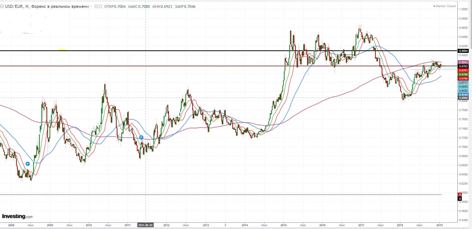 Уровень 0,8762 мы тестили первый раз 13.08.18, пробили в начале ноября и откатили ниже, затем вернулись опять наверх и сейчас