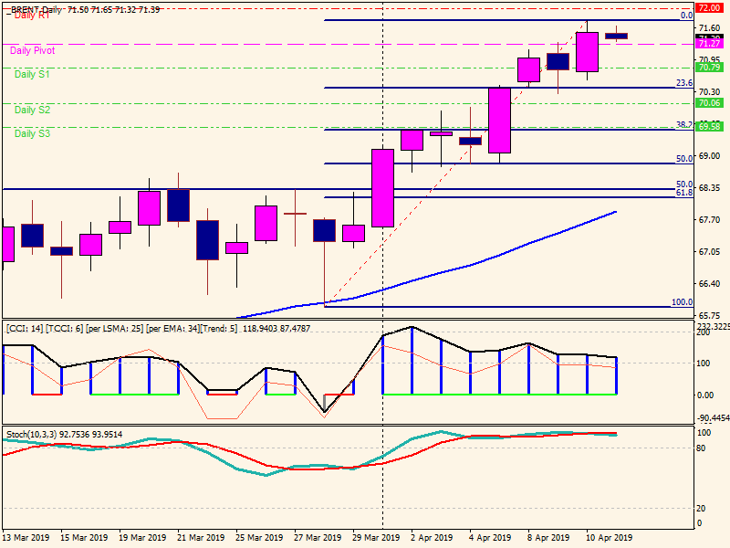 Всем доброго дня! Пост будем коротким, так как ничего принципиально пока не меняется. Нефть растет, уже который день и тренда своего не меняет. Торговля интрадей дня на мой взгляд сейчас безопасней чем перенос позиций на следующий день. Любителям сидеть в тренде - от всей души желаю не поседеть, когда тренд поменяется.