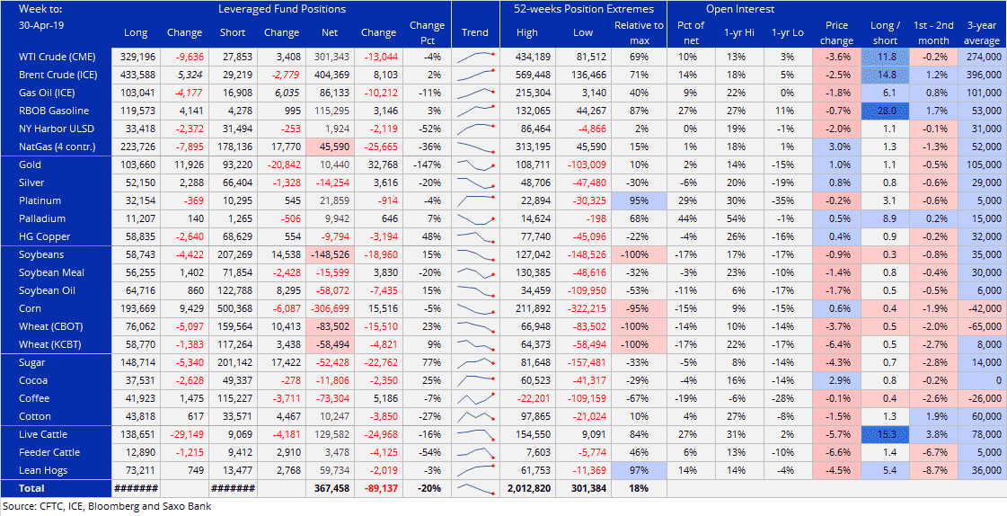 Хедж-фонды сократили бычьи ставки на рост цен на сырьевые товары до 367 тыс. Лотов, семинедельного минимума, за неделю до 30 апреля. Продажи прошли по 16 из 24 основных фьючерсных контрактов, отслеживаемых в этом отчете. Помимо сырой нефти WTI и природного газа, самые большие потери были среди сельскохозяйственных товаров, особенно соевых бобов, пшеницы, сахара и живого скота: