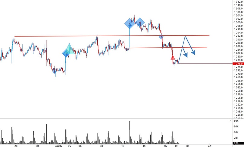 Мои опасения по поводу продолжения роста котировок золота оказались оправданы и мы опустились под корень импульса, на текущий момент я бы рассматривал только вариант снижения, думаю потенциально удобных уровня сейчас два: