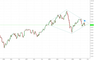 По нефти кстати на дневном графике фигура «алмаз». С потенциалом движения ~35$. Так что мы на пороге мощного движения на 100$ или на 27$. Выход уже скоро.