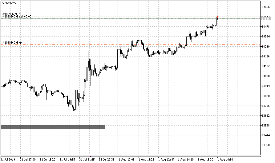 и выход по тейк профиту, рядом с терминалом меня не было, пришлось тейк ставить