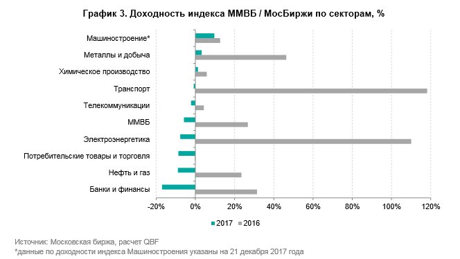 В отраслевом разрезе, в отличие от 2016 года, когда все сектора, кроме потребительского, продемонстрировали положительную динамику, в 2017 году лишь 3 из 9 секторов отметились ростом.