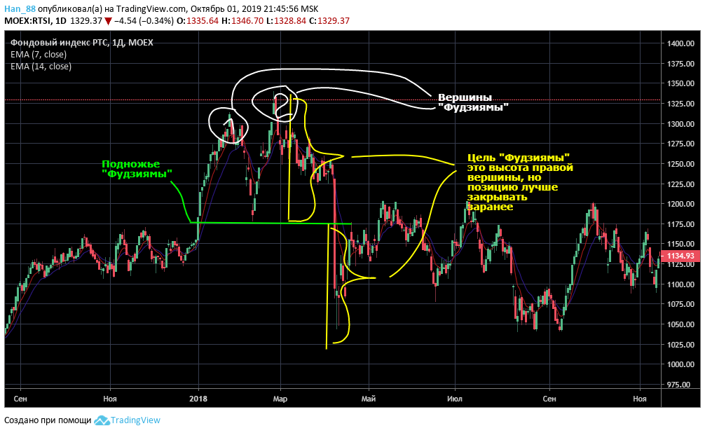 Наряду с «Анархистом» является фигурой смены тренда. Как не каждый заберётся на Фудзияму, так не каждый сможет правильно идентифицировать фигуру «Фудзияма» и зайти в позицию. Биржевики говаривают: «Каждый видит гору Фудзияма со своего огорода и бахвалится соседу, но не каждый решится забраться на неё.»