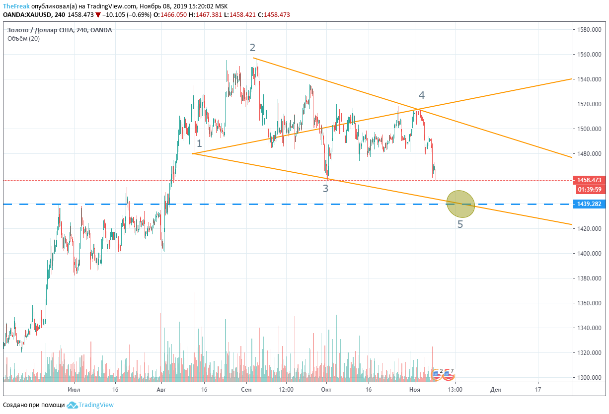 Ниже моя интерпретация по золоту (где формируется потенциальный Вульф) и серебру (где он уже нарушен):