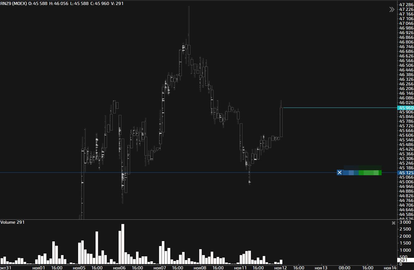 Добавить нечего, не смотря на истхаи покупатель продолжает набираться, а я жду сигналов к коррекции, которых пока так и нет, тем временем не стесняясь покупаю интересны бумаги на нашем рынке, о чем вы наверное помните из обзоров нашего рынка на канале и отдельных постах, вчера вот отлично получилось вернуться в позицию по Роснефти, которая уже сегодня везет 2%: