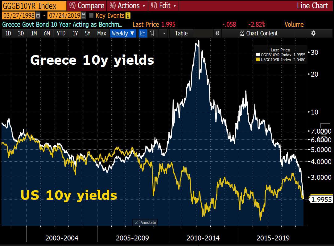 По мнению ряда аналитиков дальнейшее монетарное смягчение может принести больше проблем чем пользы. В первую очередь из-за того как это отразится на долговых рынках. Большая часть европейских облигаций уже торгуется с доходностями ниже нуля. Общий объём долга торгующегося с отрицательной доходностью превысил 13 триллионов долларов и существенная часть его это европейский долг. Порой это доходит до абсурда. Так ряд швейцарских банков доплачивает своим клиентам за взятые у них кредиты, а на днях состоялось знаменательное событие, облигации Греции о дефолте которой поговаривали ещё несколько лет назад начинают торговаться с доходностями ниже чем у облигаций соединённых штатов: