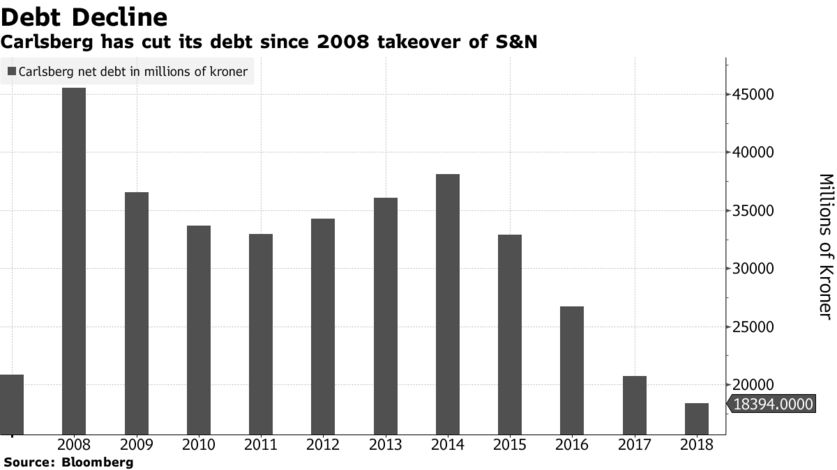С тех пор, как Харт присоединился к Carlsberg в 2015 году, компания сосредоточилась на сокращении своего долга и сокращении расходов - стратегии, которая включала воздержание от крупных приобретений. Между тем, конкуренты, такие как Anheuser-Busch InBev NV, завоевали долю рынка после серии крупных поглощений за последнее десятилетие. В последний раз Carlsberg потратила большую сумму на поглощение, когда в 2008 году она купила Scottish & Newcastle Plc примерно за 8,5 миллиарда долларов под руководством предшественника Харта.