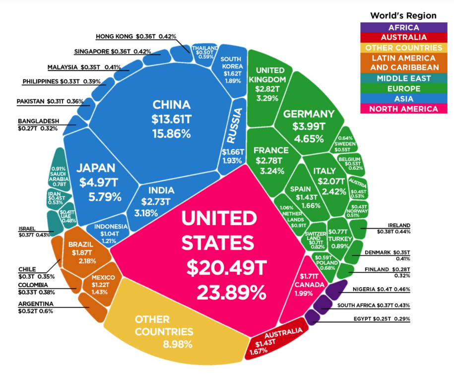1 Соединенные Штаты 20,49 триллиона долларов 23,89%