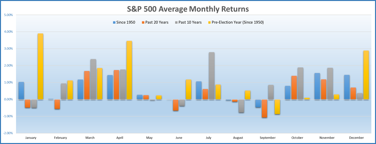 Достаточно сильным статистически для рынков является Ноябрь месяц, в то время как Декабрь стабильно слабый в последние 10 лет, является достаточно сильным в предвыборные годы в электоральном цикле президентских выборов США: