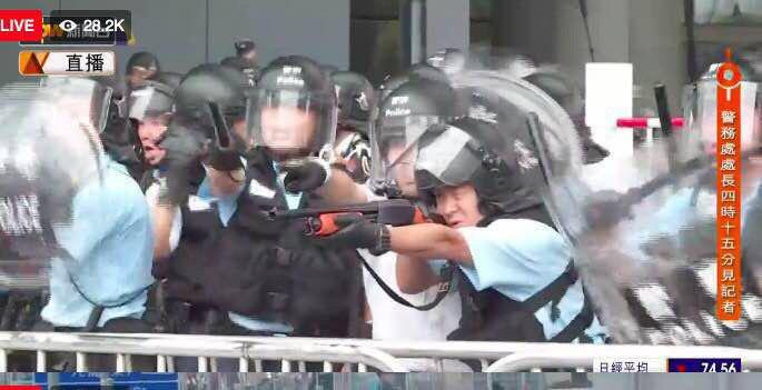 При это полицейские открыли огонь боевыми патронами по протестующим с близкого расстояния в одном из районов на востоке Гонконга.