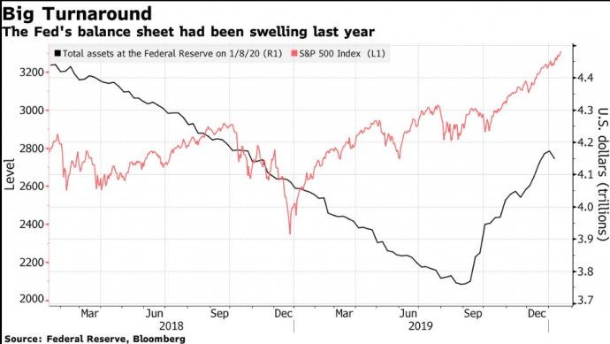 «Таким образом, в этом смысле расширение баланса ФРС, по крайней мере, коррелировало с ростом фондового рынка, который мы наблюдаем с октября», - заявил главный экономист Deutsche Bank AG Торстен Слок в интервью Bloomberg Radio в начале этого месяца.