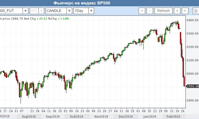 Американский S&P 500 упал на 4,42%, что является самым большим падением с августа 2011 года в четверг. Он потерял 12% с момента достижения рекордного закрытия 19 февраля, отметив самую быструю коррекцию за шесть торговых дней.