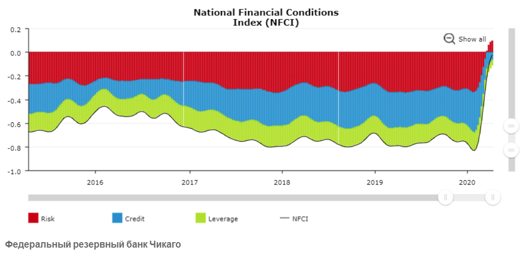 Наконец, он указал на Индекс национальных финансовых условий Чикагской федеральной резервной системы, в котором собраны 105 показателей финансовой деятельности для оценки общей доступности кредитов для предприятий.