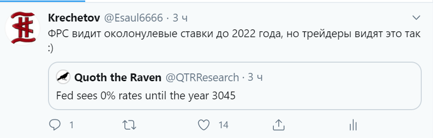 При этом американские трейдеры восприняли решения ФРС с юмором, ниже один из ретвитов в моём твиттере:
