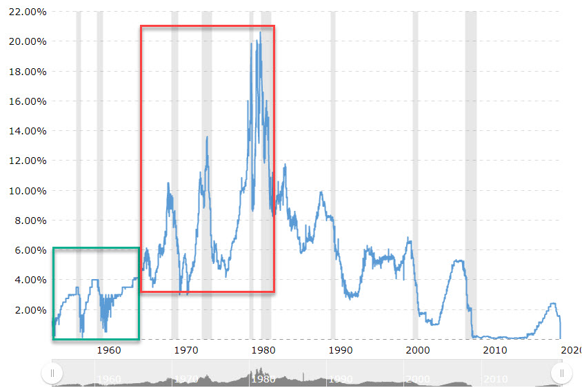 В прошлом столетии у нас было несколько периодов боковиков (во времена великой депрессии и инфляционного кризиса), и лишь один толковый тренд роста в послевоенные годы.