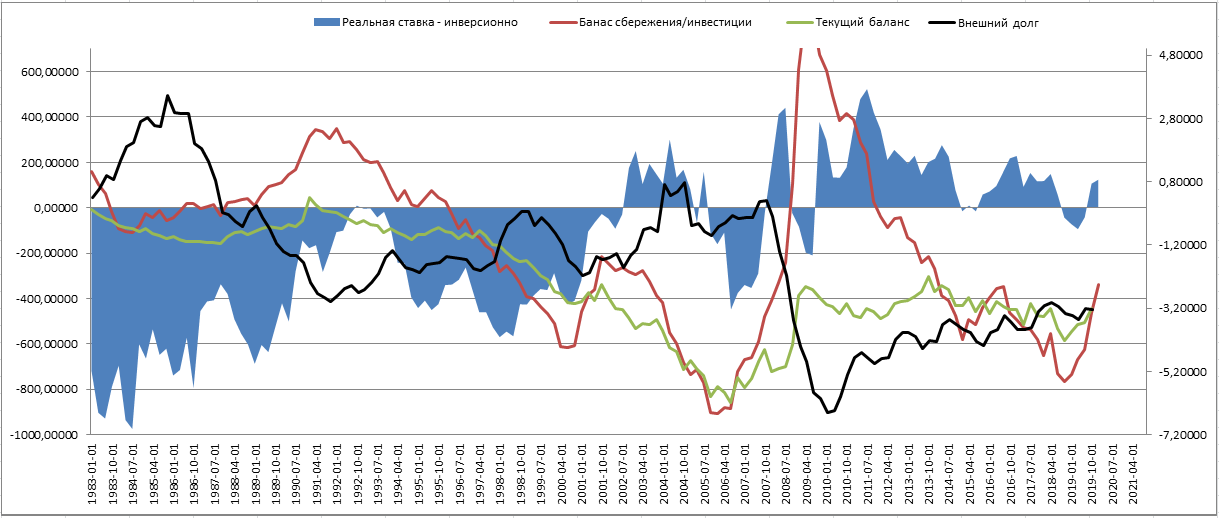 ВАЖНО, что та же ситуация наблюдалась и в кризис 2008–2009 годов, при этом за все прошедшее после кризиса время уровень дефицита внешнего баланса так и не подошел к докризисному уровню, что явилось результатом действия отрицательных реальных ставок на протяжении всего десятилетия.