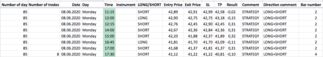 В понедельник работал лонг+шорт. Результат работы алгоритма за 08.06.2020: