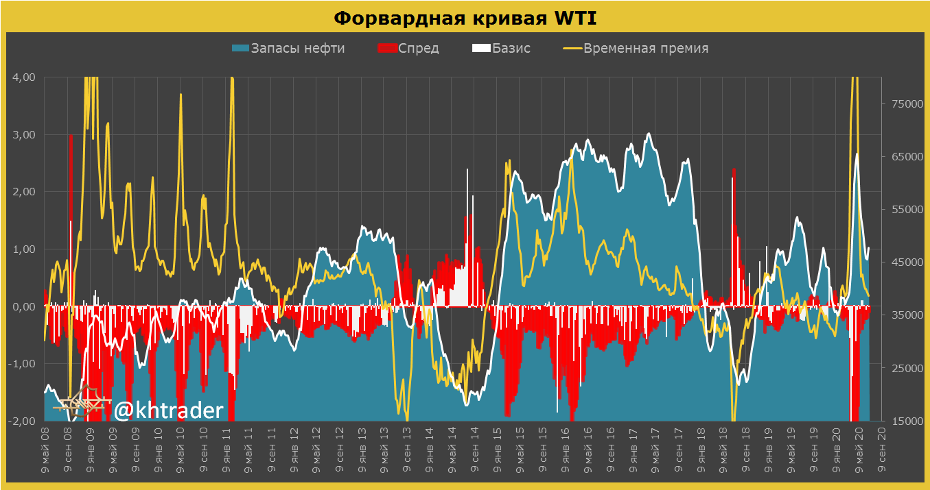 Перейдем с оценками на финансовый рынок: на графике ниже — ситуация с оценкой финансового рынка WTI, фьючерсные контракты по которому торгуются на Чикагской товарной бирже: