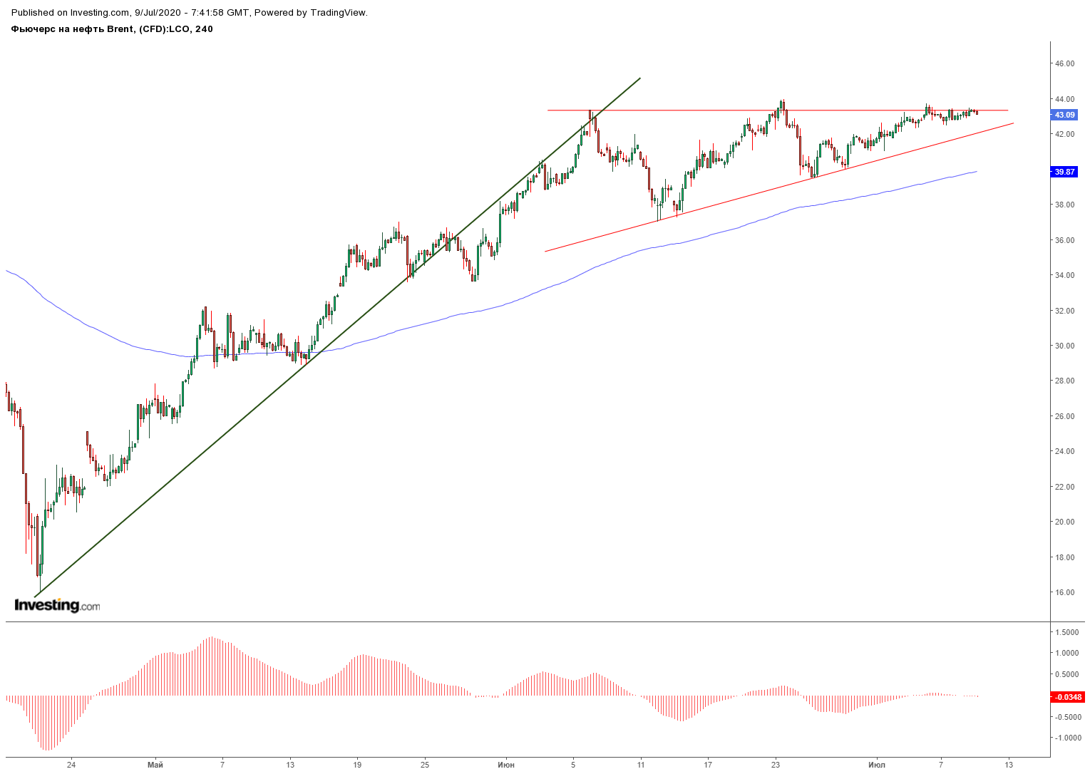 С технической точки зрения, как и писал ранее, есть риск боковой коррекции, которая запросто может реализоваться, если мы оттолкнемся от 42 по Брент.