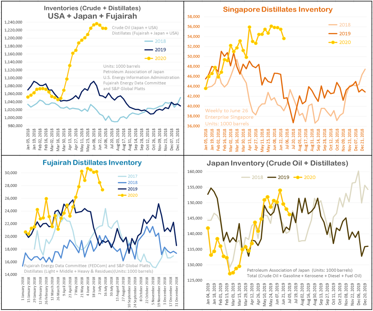 1) Совокупно дистилляты плюс сырая нефть на ведущих хабах Япония+США+Фуджайра (ОАЭ) после того, как обступили от максимумов, на прошлой неделе остановились в боковой динамике. При этом запасы остаются гораздо выше прошлого года.