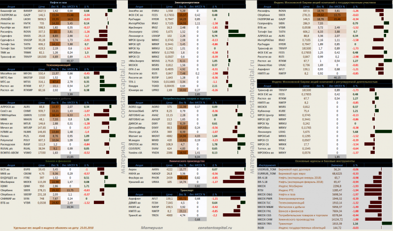Динамика акций за текущий день, в структуре отраслевых индексов, и индексов государственного сектора.
