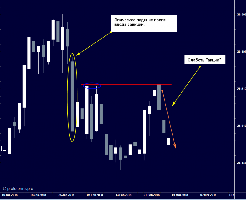 Из наблюдения таких ситуаций, серьёзный новостной фон, акция становится "слабой" и любой чих её подкашивает. Кто выходил, вышел всерьёз и на долго. А новые входы больше похожи на прощупывание ситуации. После небольшой коррекции эпического падения акция гикнулась с высоты: