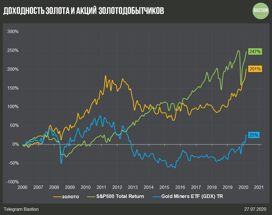 Доходность золота и акций золотодобытчиков