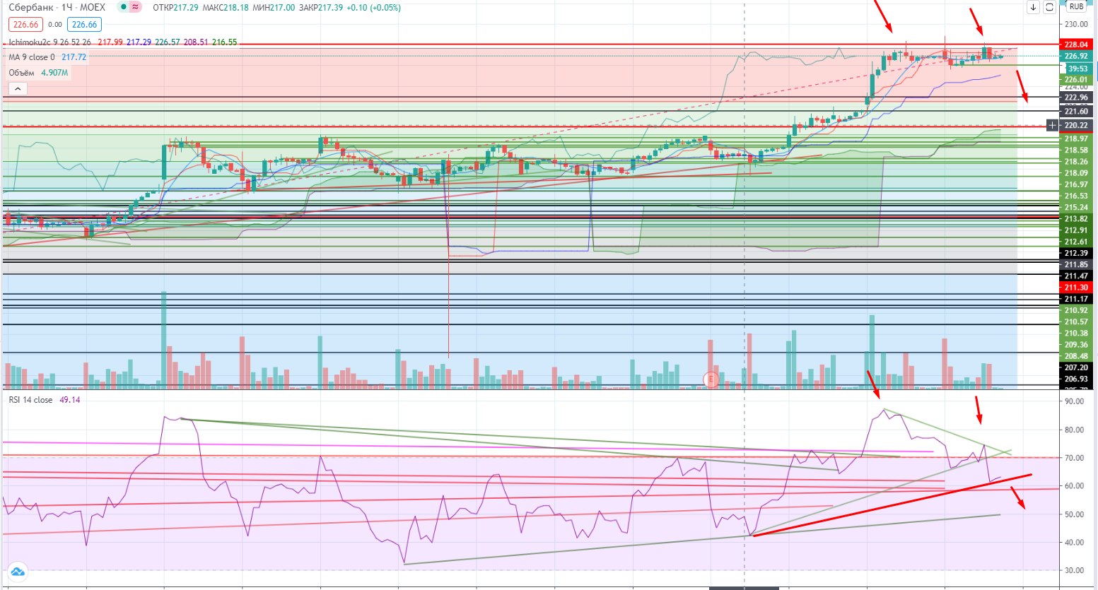 В Сбербанке пока подтвердился уровень 228,2, более того, и на часах он «сыграл».