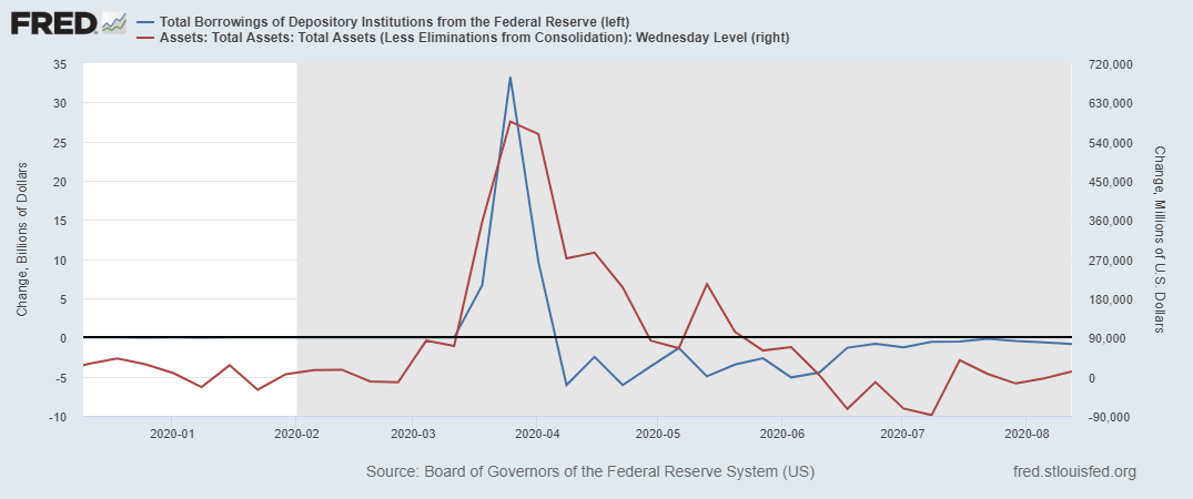 Начнем с обзоры баланса ФРС и динамики прямого кредитования депозитарных учреждений