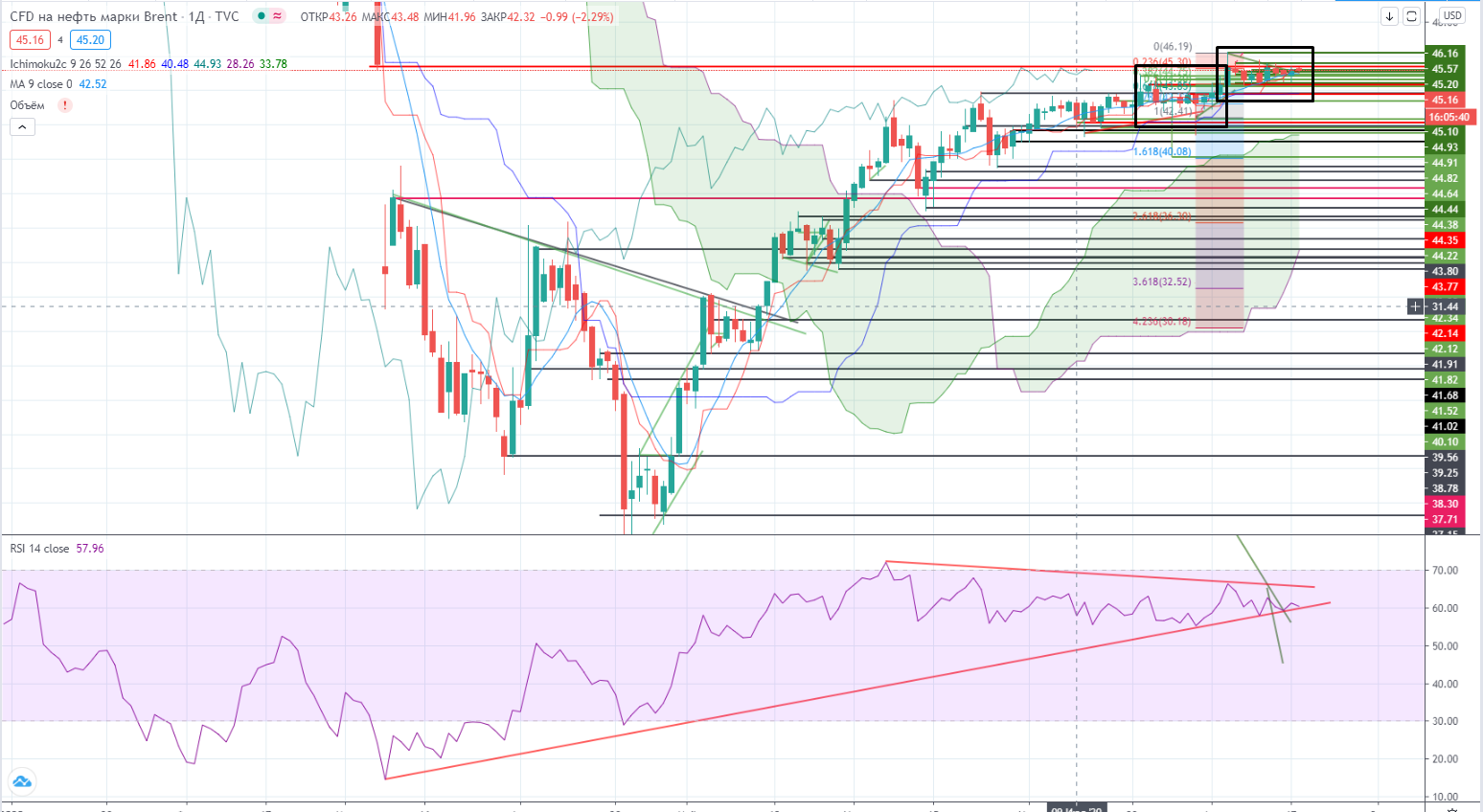 Нефть так и не вышла из канала $44,28-$45.5, так что драйвера для движения рынка от нее ждать пока не следует.