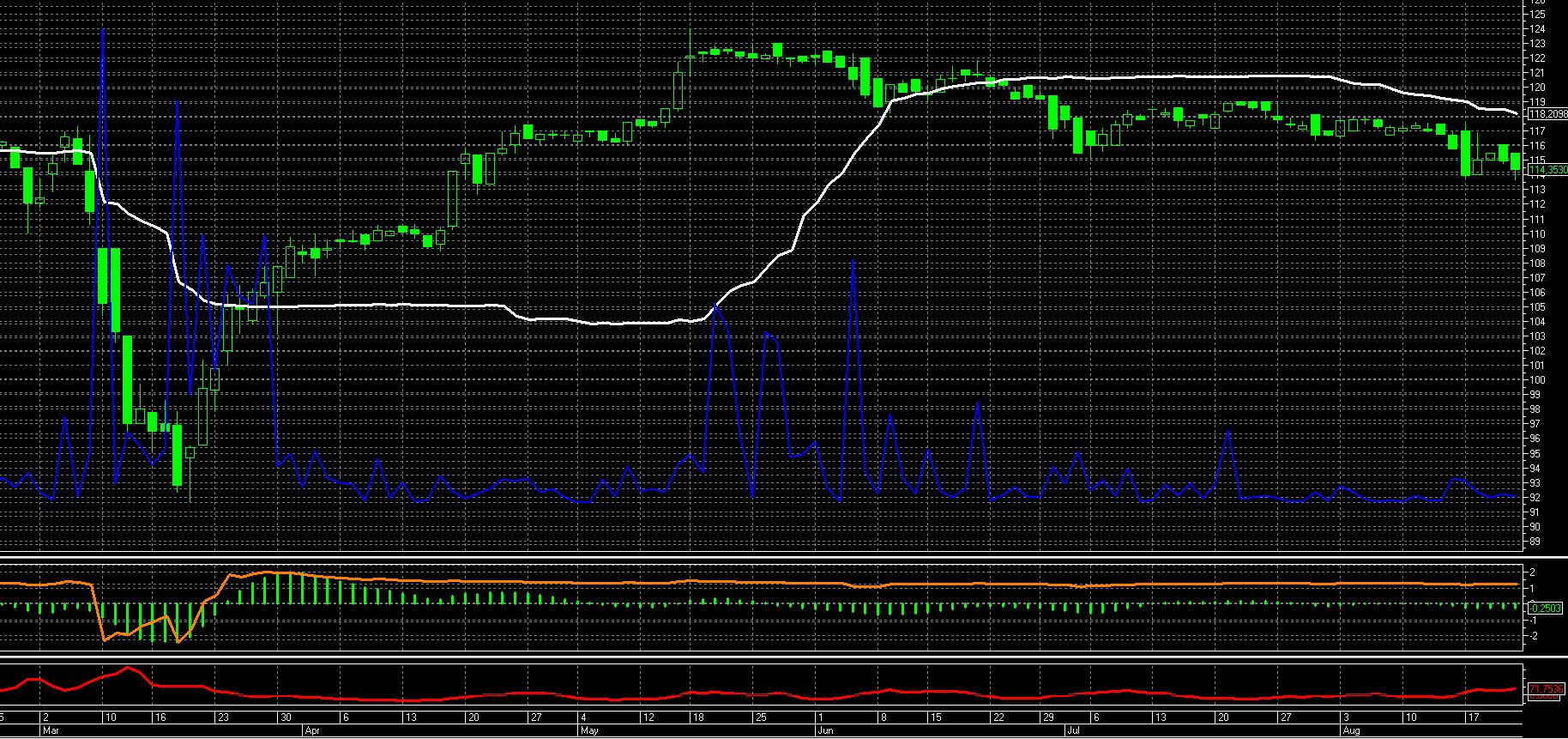 Индекс доллара по дневным (намечается разворот, это риск для сырья).