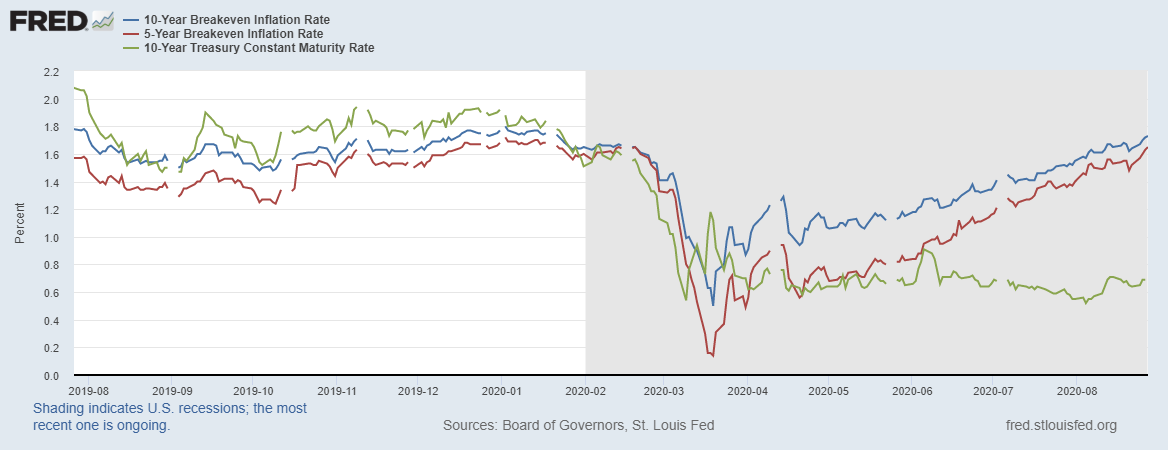 Вчера Пауэлл упомянул в своей речи об этом феномене и сказал, что ФРС будет бороться в моменты низких и высоких инфляционных ожиданий. Давайте посмотрим на реакцию этих самых ожиданий