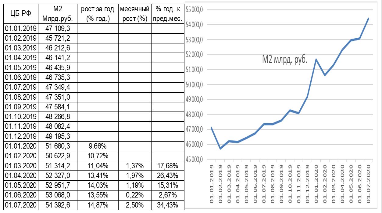 В 2018 — 2019г.г. М2 в РФ рос примерно на 10% в год.