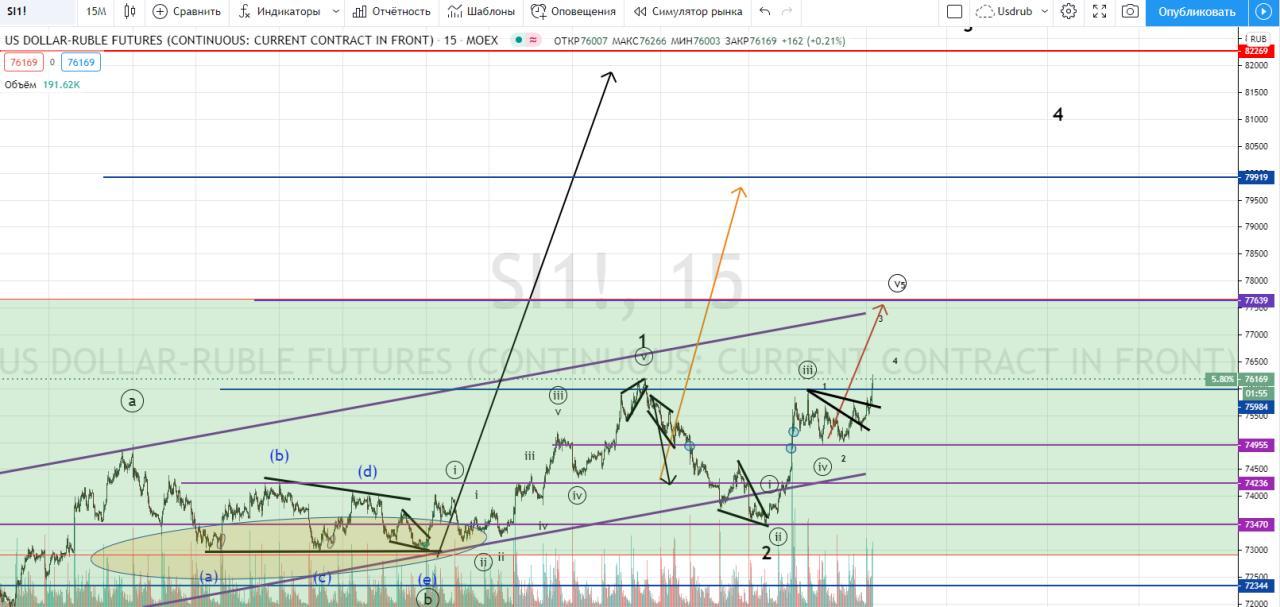 Ну а на сегодня посмотрим танцы у уровня 75980, в виде теста и дальше лонг, или запил с расширением ренджа в случае его пролива вниз.