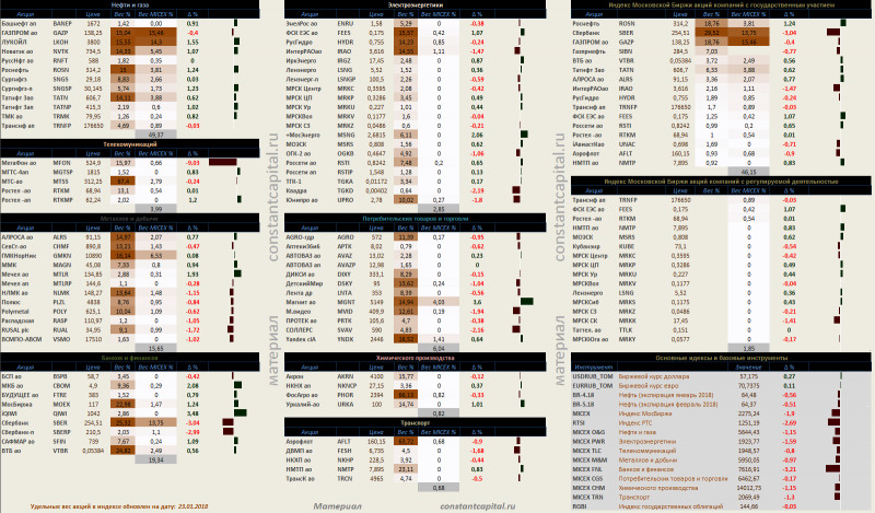 Динамика акций за текущий день, в структуре отраслевых индексов, и индексов государственного сектора.