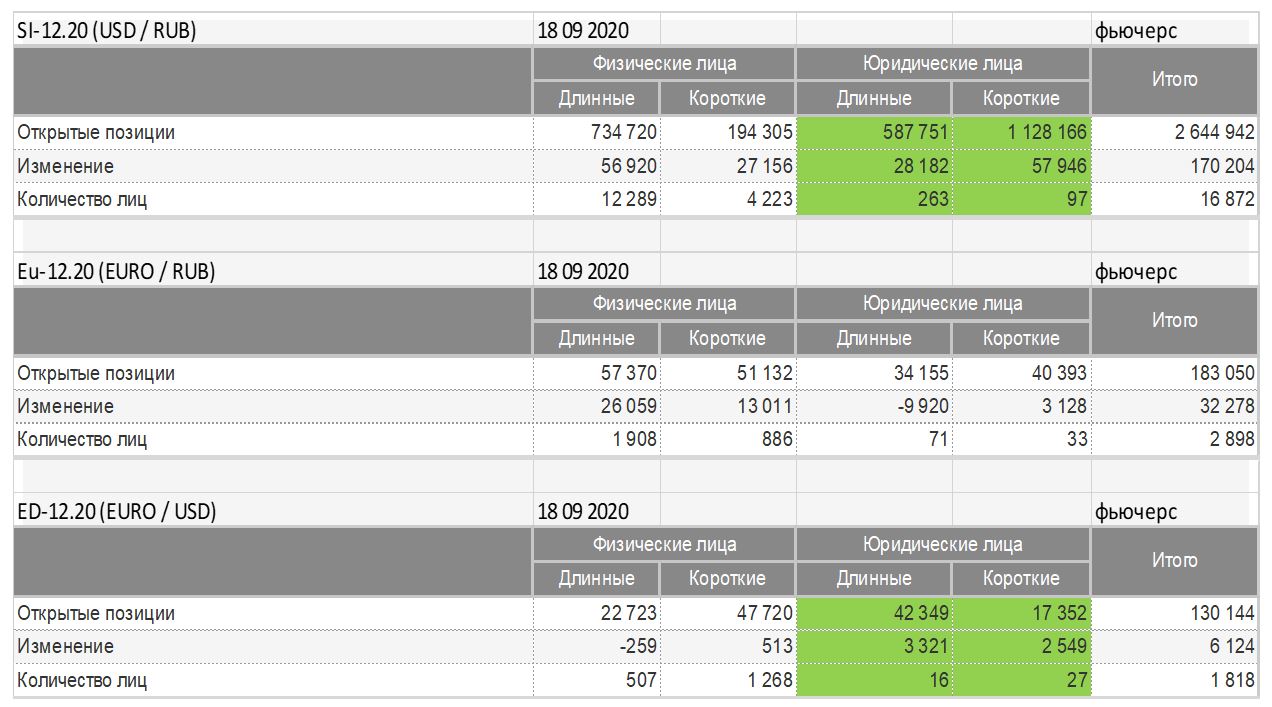 18 09 2020 юр. лица закрывали позиции перед предстоящими выходными.