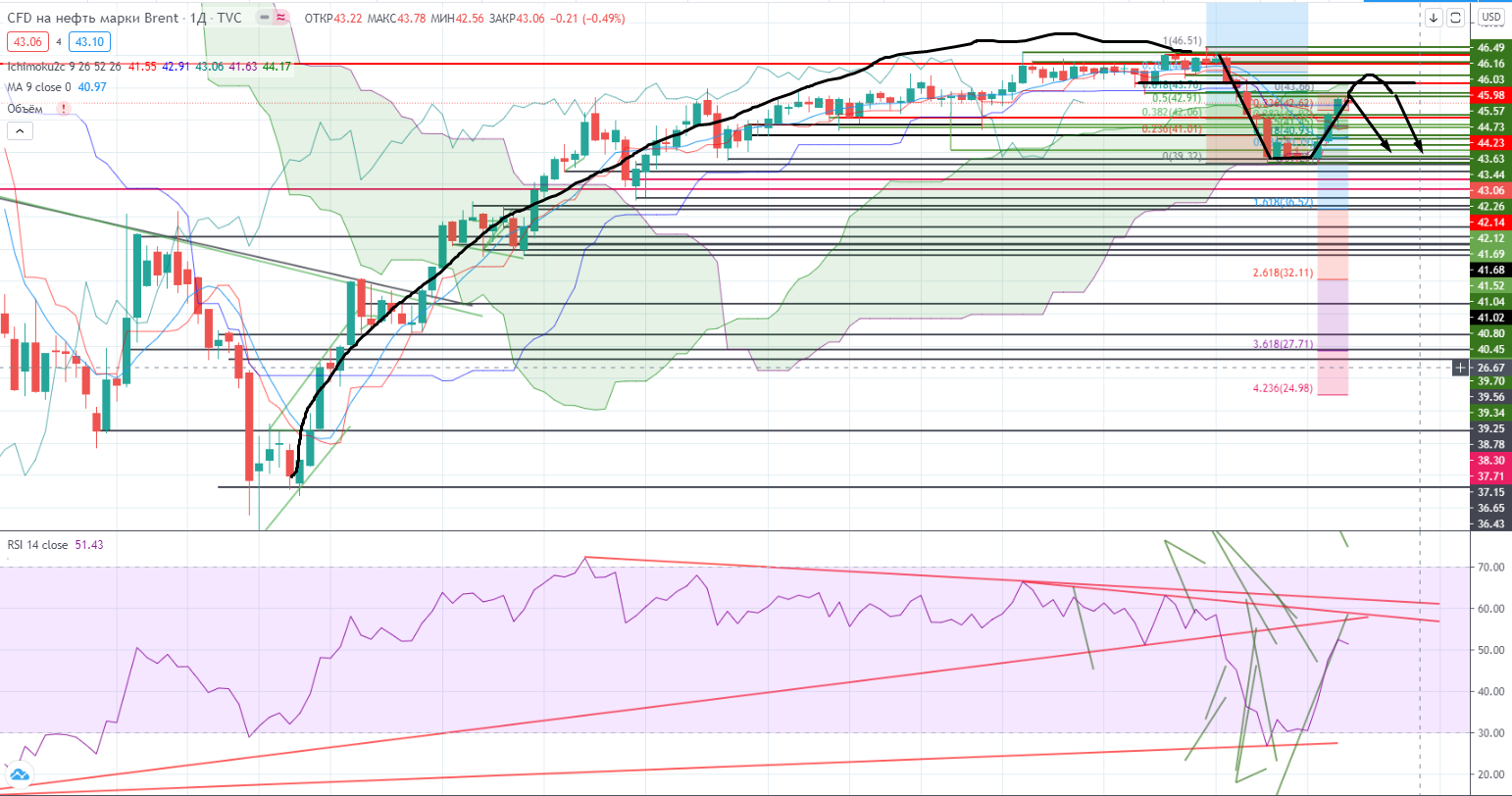 Нефть после отстоя на $39,7 вырвалась вверх, но внешние факторы в виде ослабевающего шторма должны все таки сыграть свою роль. Да и чисто технически более логичным было пойти вниз. Но может это произойдет и на сразу, может она все же достигнет в моменте нижнюю границу канала $44,2, а может прямо и отсюда пойдет вниз. Но пока особых драйверов для роста я не вижу.