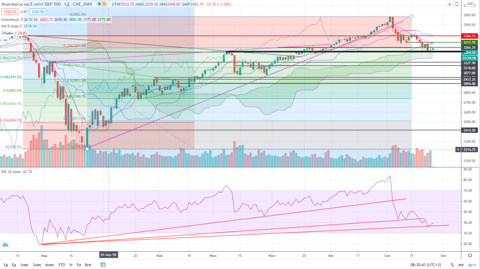 Америка пытается отжаться от поддержки 3227 по фьючерсу на S&P, и у нее это локально пока получается.