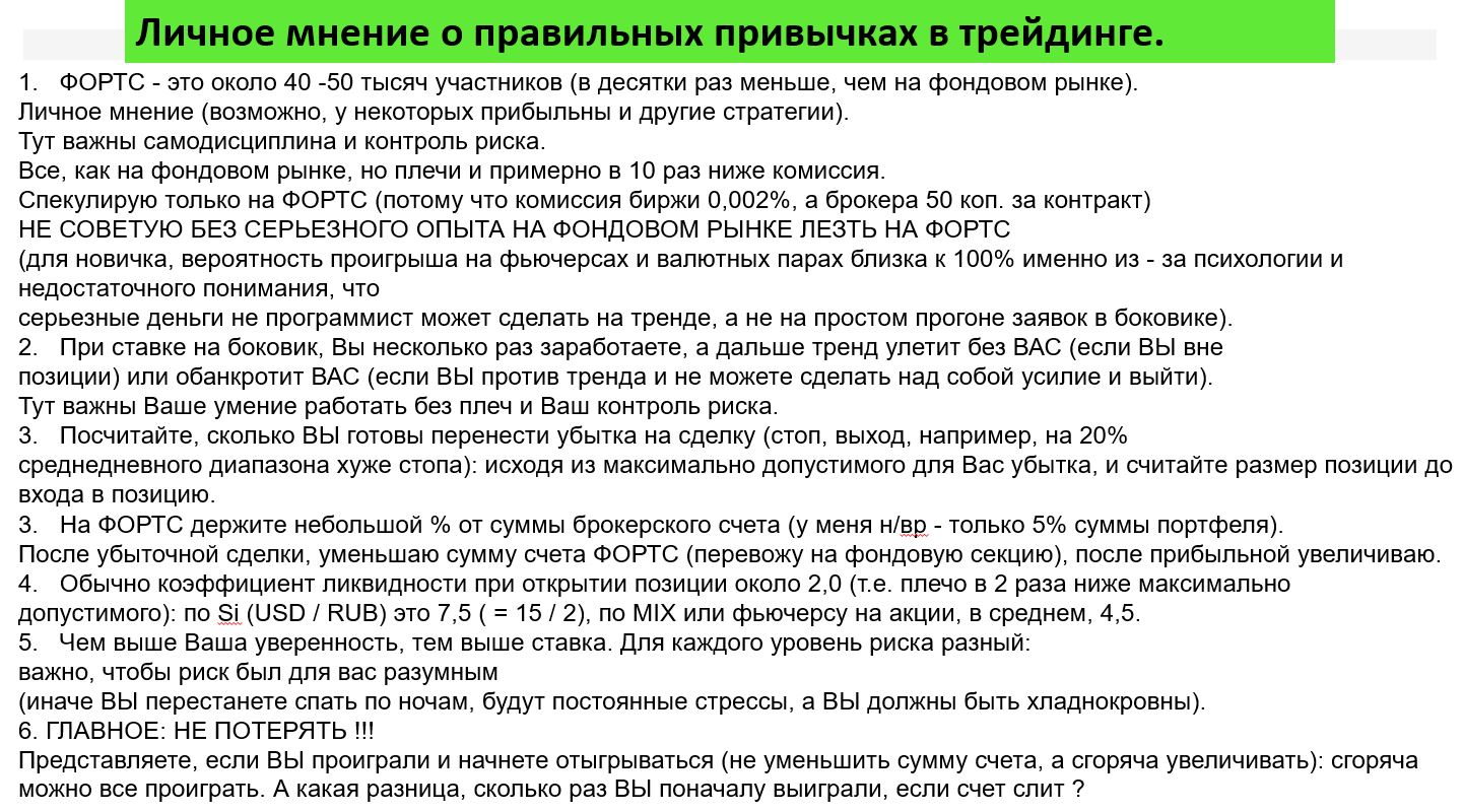 Сделал для ВАС слайд: личное мнение о правильных привычках (у Вас - свое мнение, свой стиль и свой временной диапазон, высказываю именно личное мнение).