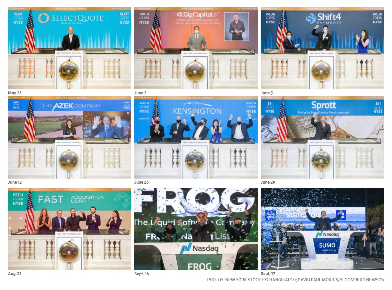 WSJ пишет, что 2020 г. может стать самым выдающимся годом для рынка IPO за всю его историю. По данным Dealogic, за три месяца до конца через IPO компании уже привлекли 95 млрд долл. Это превышает годовые показатели почти за все годы кроме 2014-го и технологического пузыря в 2000-го. В 2014 г. в результате IPO было привлечено 96 млрд долл., более четверти из которых были получены от Alibaba Group Holding Ltd.