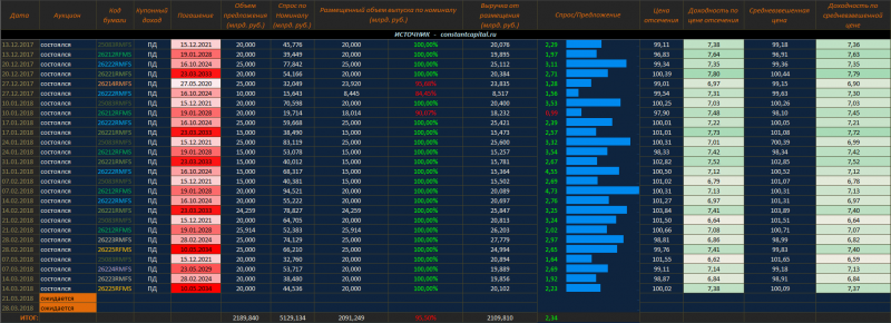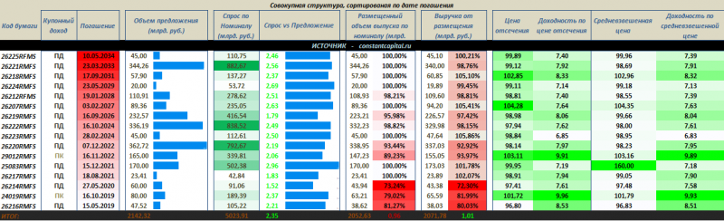 Полный список размещений ОФЗ, с учетом результатов последнего аукциона