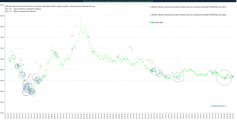 Объем сделок валютный своп по покупке долларов США и евро за рубли, по данным статистики ЦБ 2015 - 2018 г.: