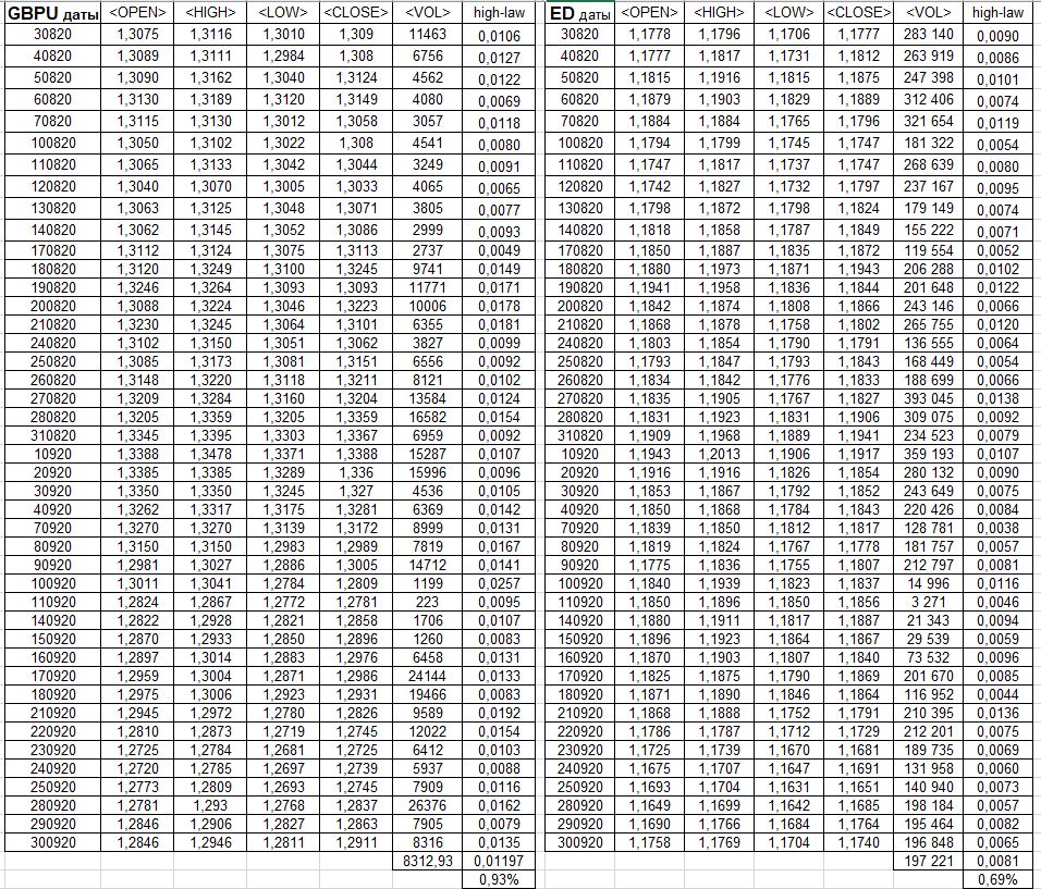 Падение евро и фунта к USD как risk off c 01 09 2020